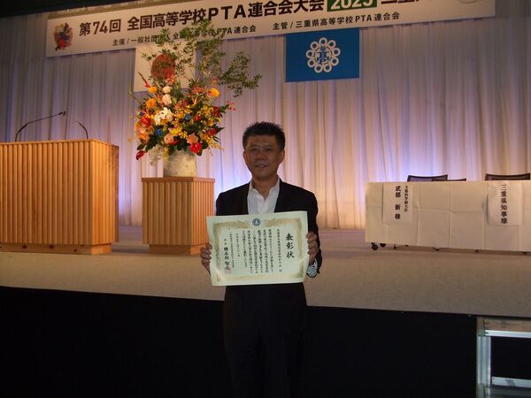 丸尾 友明 様 (前兵庫県公立高等学校PTA連合会会長)が受領されました。